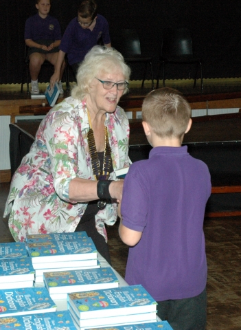 Chrissie Lawson, presenting the 6th Year leavers from Cordwalles School with the Rotary dictionairies.